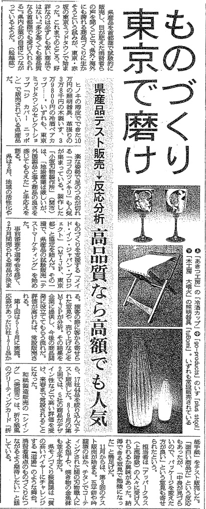 朝日新聞[岐阜版]に記事掲載 2010年10月28日 10月26日付の朝日新聞[岐阜版]に、岐阜の県産品テストマーケティングの記事が取り上げられました。 ※画像をクリックすると拡大します THE COVER NIPPON ⇒